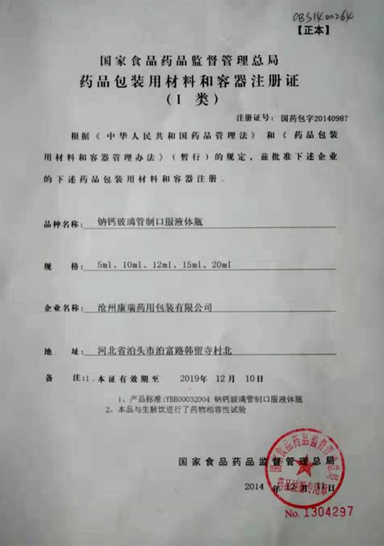 【鈉鈣玻璃管制口服液體瓶生產(chǎn)資質(zhì)】